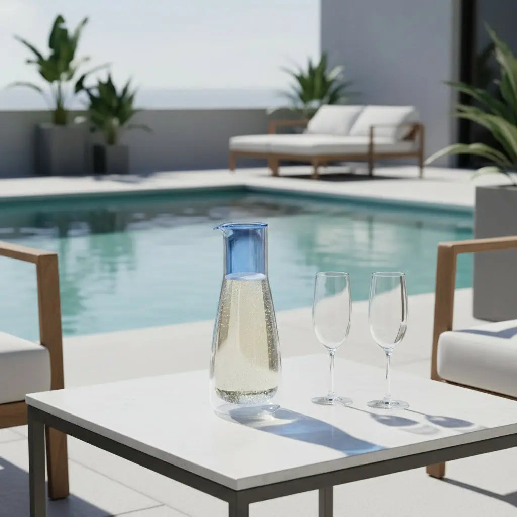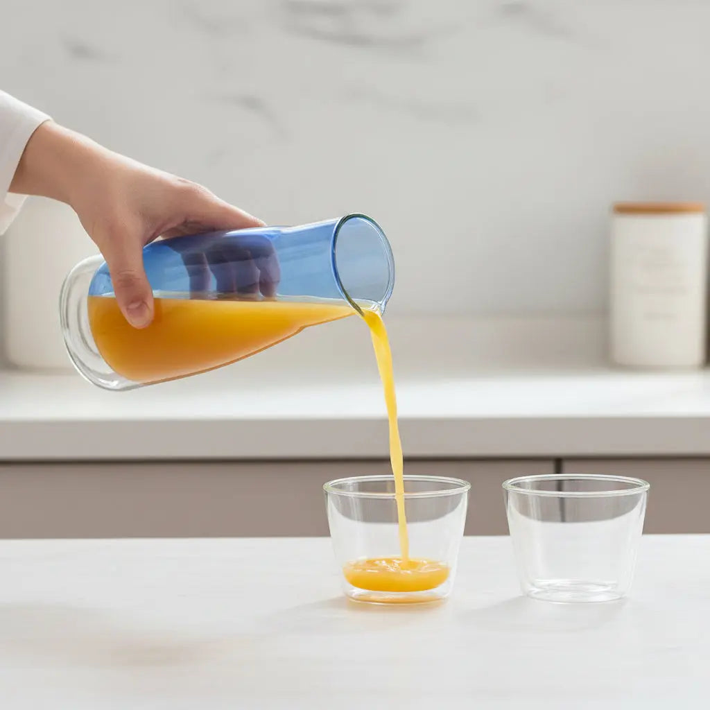 This blue glass carafe set is perfect for serving a wide range of beverages, from water and juice to wine and iced tea. With its 1000ml capacity, it is perfect for both individual and group servings, making it ideal for any occasion.