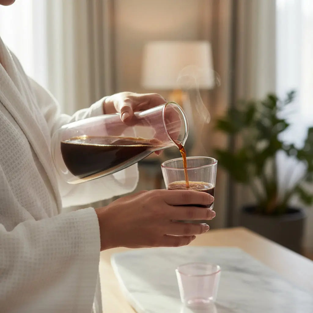 This pink glass carafe set is perfect for both casual and formal occasions. Whether you’re hosting a dinner party or enjoying a quiet meal, it adds a touch of elegance and ensures your drinks stay at the perfect temperature throughout.